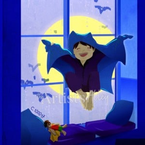 5 € Impression Illustration numérique Bruce Wayne dans son manoir enfant Mini super hero Batman
