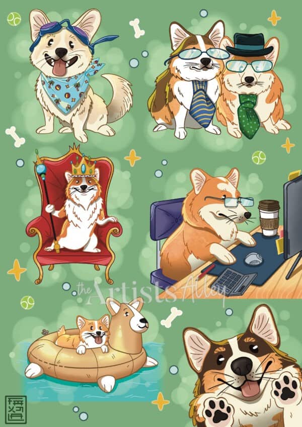 Voici une planche de Corgi, le chien préféré de la Reine Elizabeth, dans des actions de la vie quotidienne.