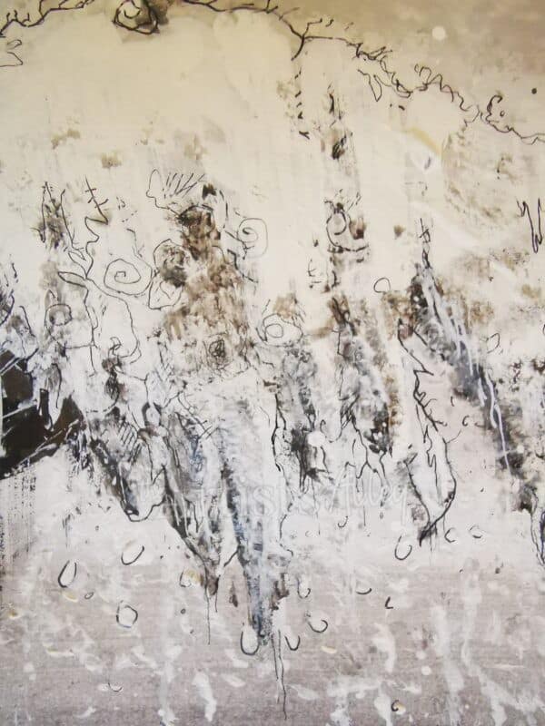 Acryliques, stylos, feutres,crayons gras et poscas toujours au rendez-vous pour cette pièce unique.